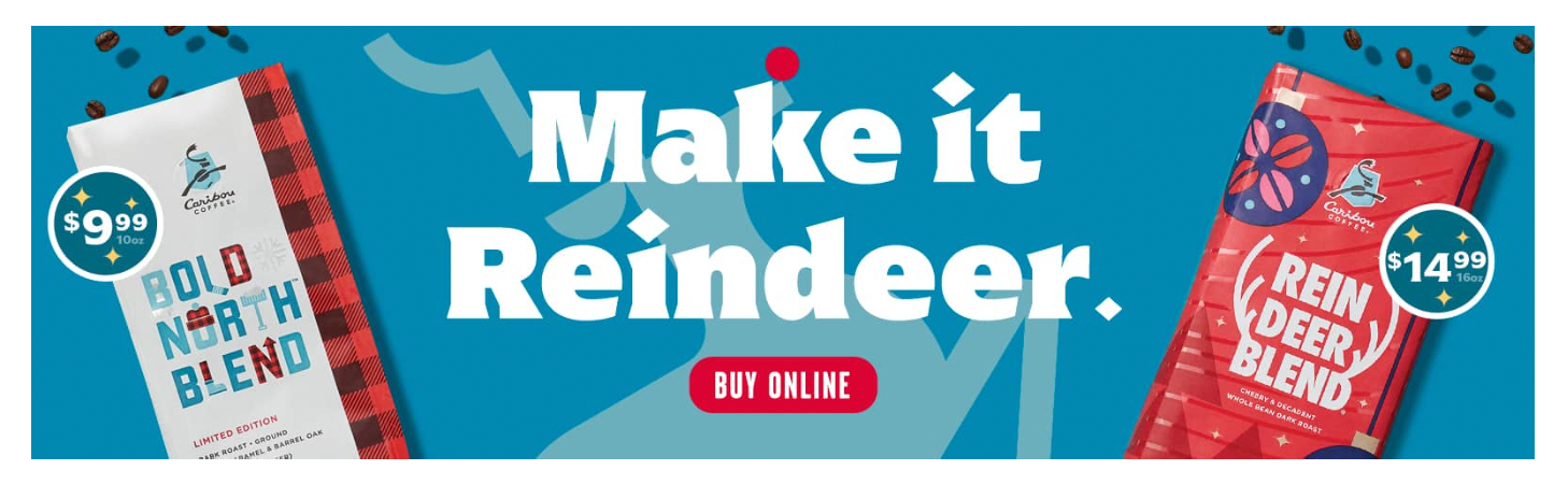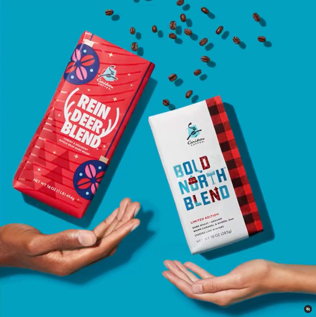 Packaging, merchandise, campaign, and brand creative came together to create an intricately woven Caribou Holiday story. The coffee foil design informed the campaign strategy which informed the merchandise creative and bolstered the 2 month-long season of sales. Caribou broke free of its traditional “Cari-blue” in favor of an energetic and vibrant campaign base color. The winks and nods in the copy brought to life in the social animations, emails and web design personalized these scenes and related to so many of Caribou's core consumer group. E-comm saw never-before-reached numbers of visits and purchases. Gift cards grew year-over-year because of a unified and strategic gifting message across digital touchpoints.