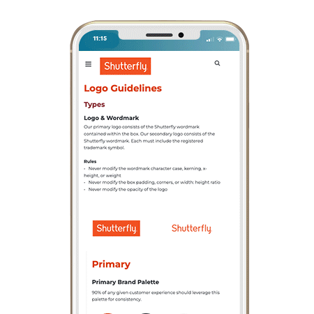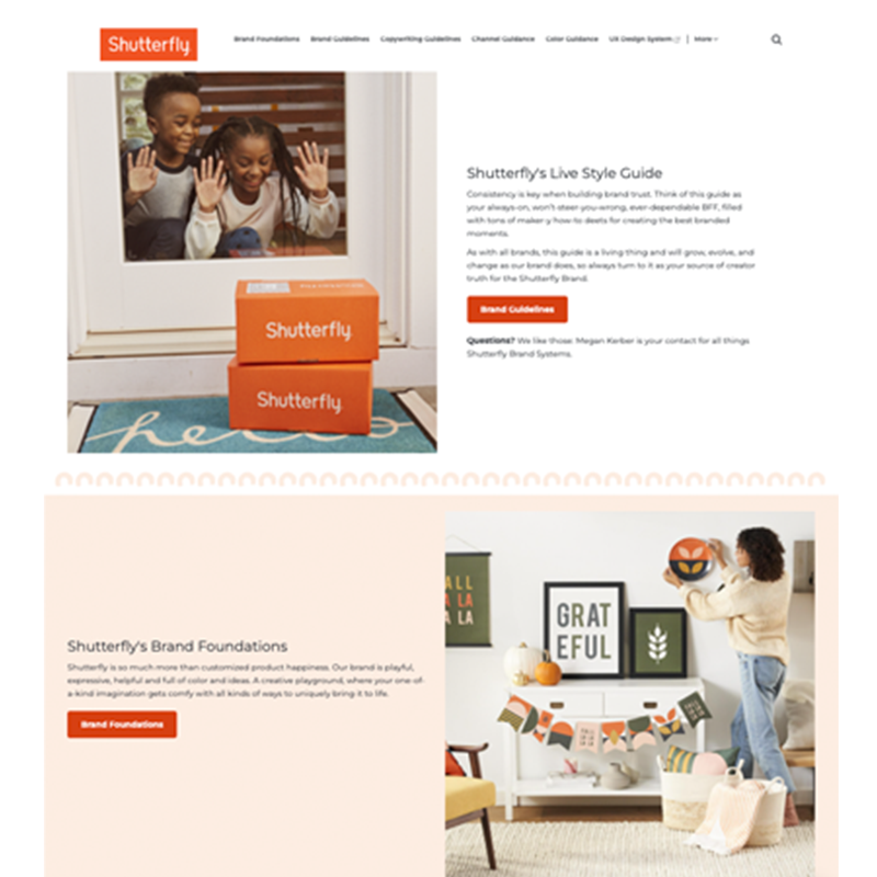I lead the build, launch and creative direction of Shutterfly’s 1st ever Live Style Guide, and managed the Brand Systems team responsible for content and governance.