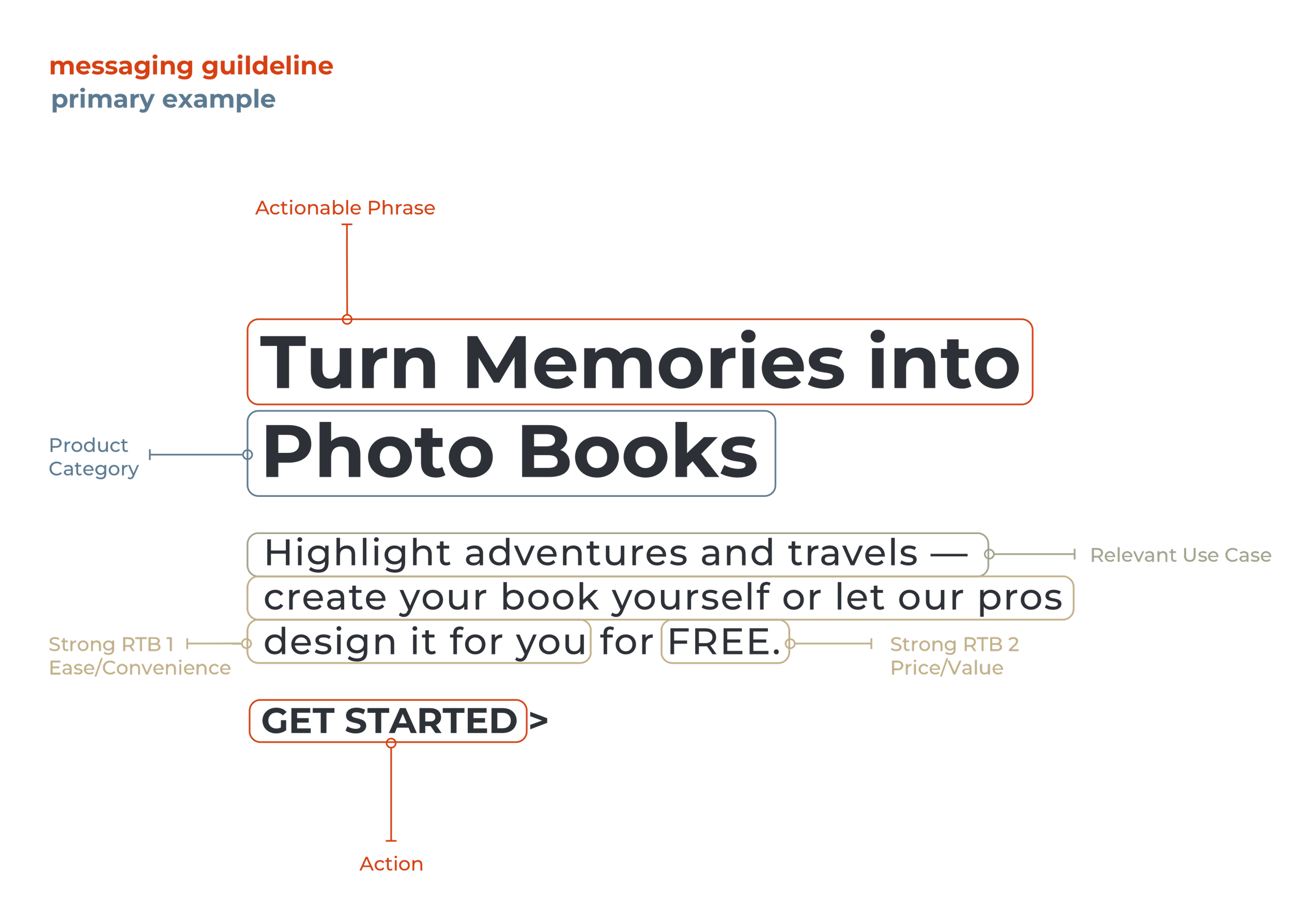 Partnered in brainstorming sprints and workshops with the copy team and leadership to define and reposition Shutterfly messaging. Lead the development of guidelines, designed illustrated examples, and partnered closely with copywriters and design teams as they rewrote and launched new messaging across an array of touchpoints including site, app, CRM, social, and display over the course of just 1 month.